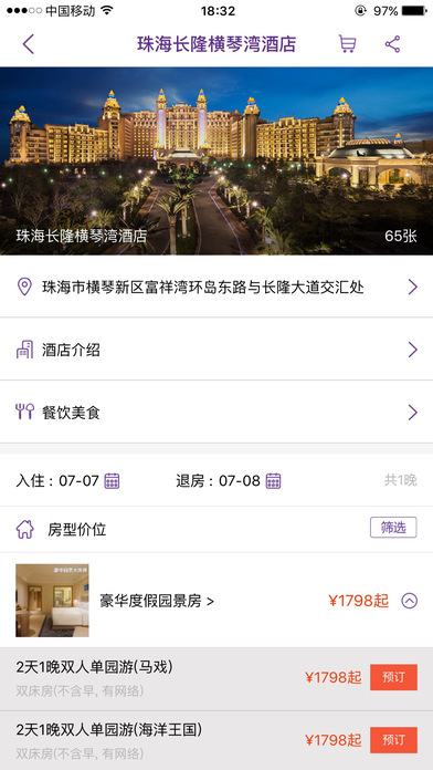 更即时和便捷地浏览、预订酒店,购买门票。 实时同步最新酒店客房状态信息,好房间不会错过。在线购买门票,获取预订二维码,直接入场,省去现场排队购票的麻烦,让您更轻松。