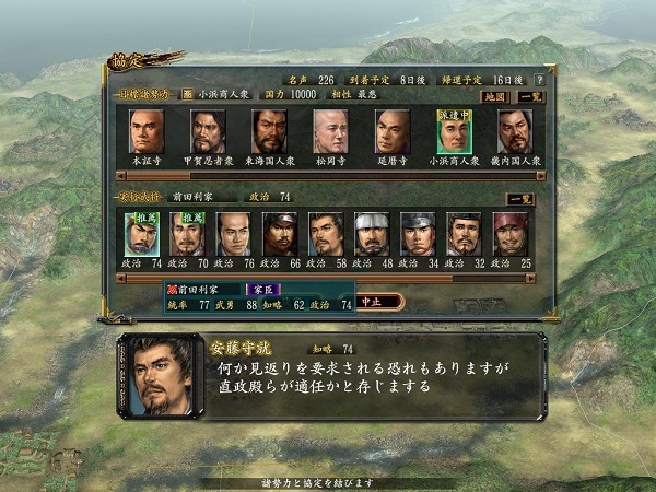切札:同盟的敕令 效果:下次评定时,强制石高第一位的势力与自军同盟