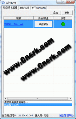 WingDNS免费动态域名客户端 V1.0 简体中文绿色免费版 永远免费的顶级动态域名服务想做站长?一开始就要花钱租空间或者托管服务器,网站还没有开张,你就花去了许多不该花的钱? No,No,我们能够让您把网站架在自己家里机器上,用户就能够直接以www.XXX.com方式访问你的网站,直接降低做站长的门槛。你只要把域名的DNS指向到我们服务器,下载我们的客户端,一切都轻松搞定。 这些都是免费的,我们不限域名数,不限域名下的记录数(二级域名),并且承诺永远免费