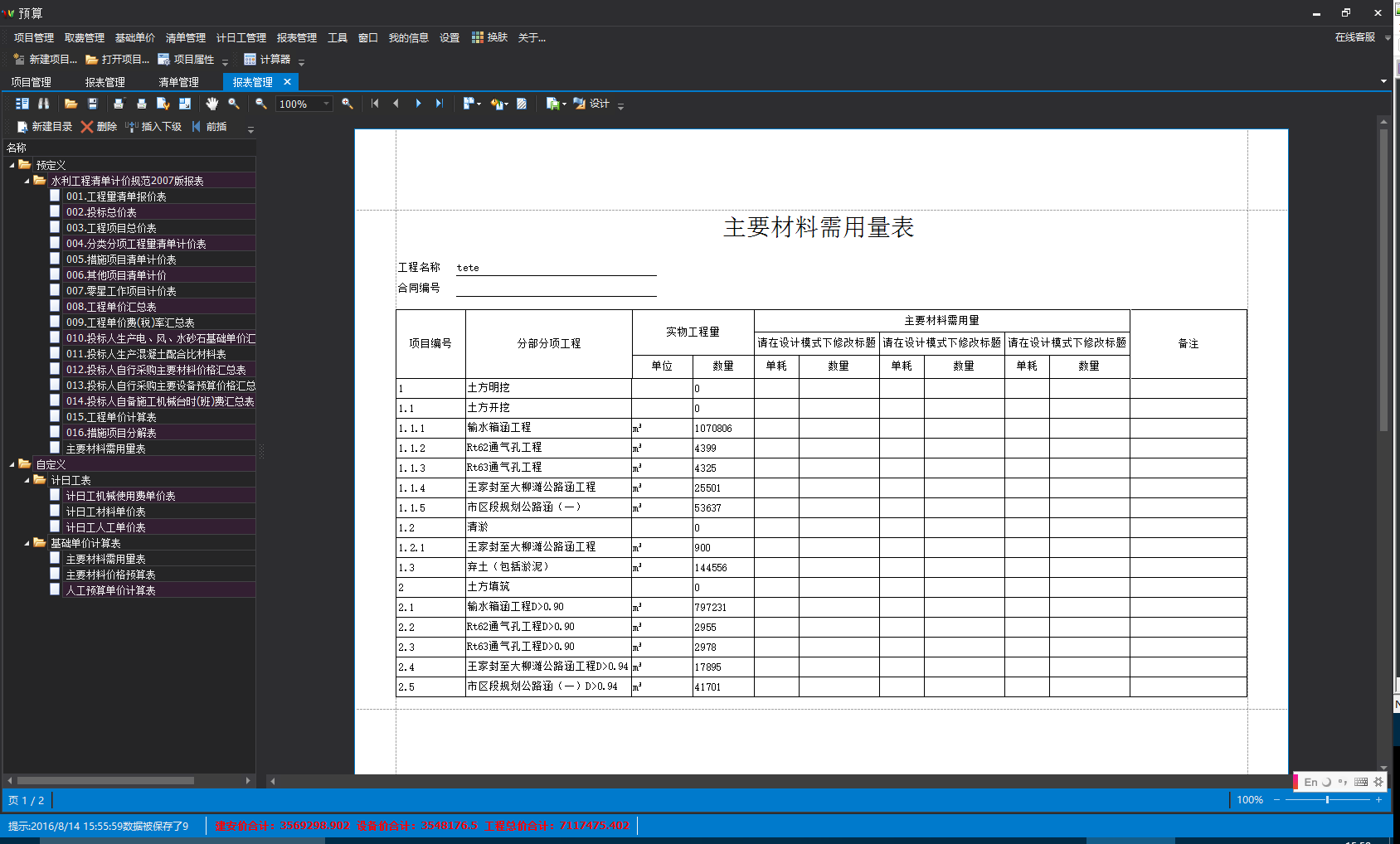 《超算水利水电造价预算软件》主要适用于水利水电项目业主、设计院、咨询等单位、施工单位编制水利水电工程前期估算、设计概算、执行概算、标底编制、投标报价以及竣工决算等不同阶段所需要的造价文件。