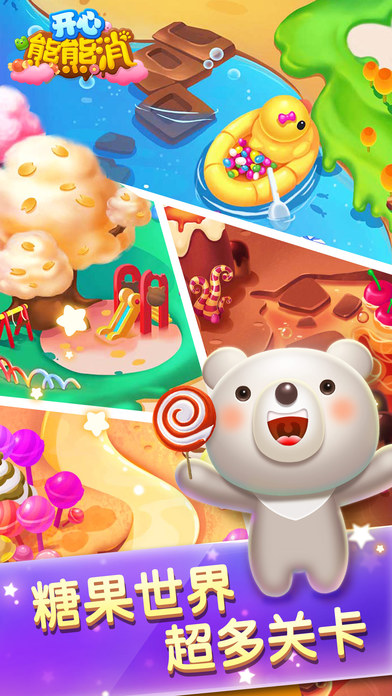 《开心熊熊消》,2016国民级萌系消除手游。和呆萌熊子、萌宠们一起来闯关,集结新萌友,消除不开心!超炫的消除特效、和超能萌宠一起极限挑战……乐在其中,其乐无穷,不可错过的开心!【游戏特色】
