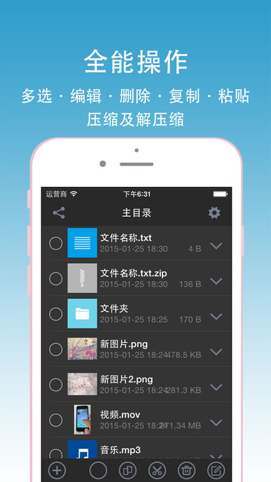 * 支持各种文件操作,如创建/删除/移动/重命名等