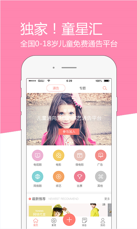 童星汇app是一款生活服务应用,是全国0-18岁儿童免费演艺通告信息招募服务平台。找演员、找剧组、找大赛来童星汇。【更新日志】