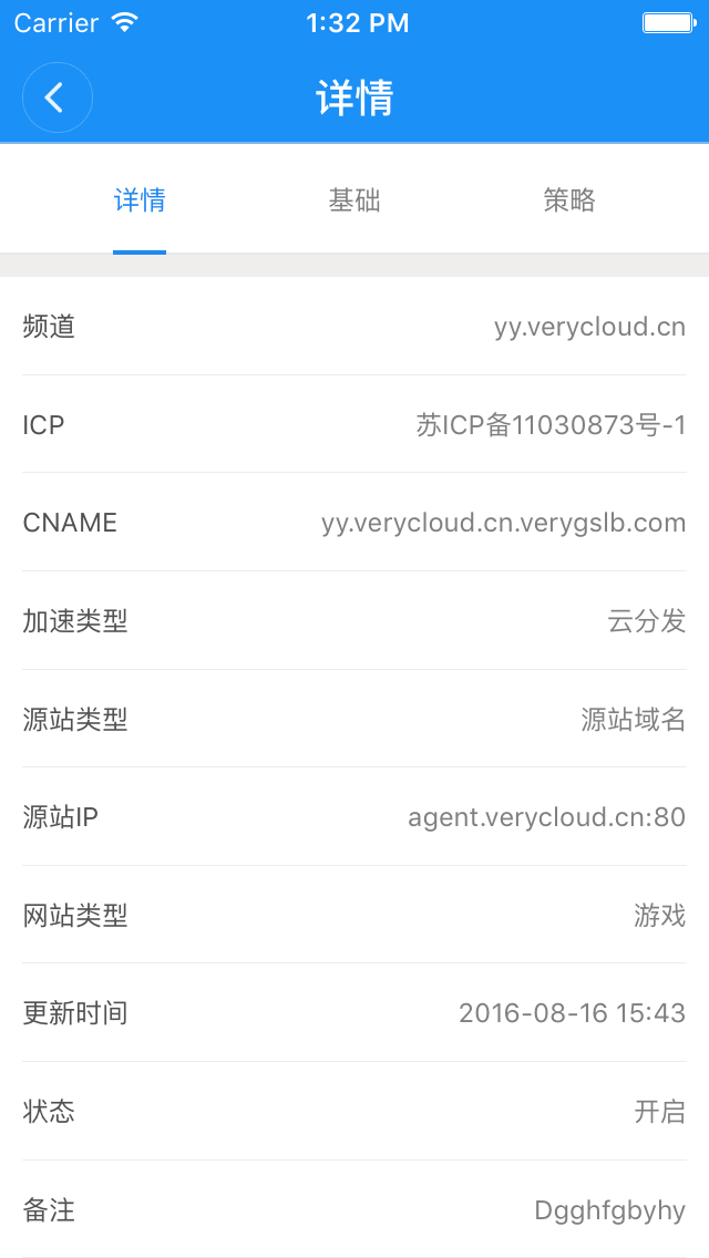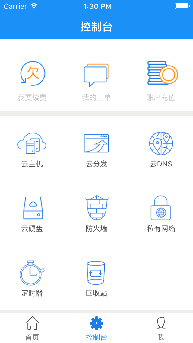 云主机:可管理当前账号下的所有主机,随时查看主机信息和状态,并可进行开关机、重启等操作。云分发:可管理当前账号下的所有加速频道,并可在线修改源站、策略等,并可查看实时带宽,统计分析,提交文件和目录刷新。