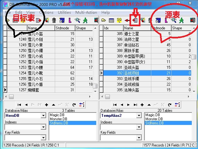 10、设置好DBC后回到桌面,打开DBC图标,在左下角,数据库/别名打开HeroDB看看,数据出现了,就安装成功了。