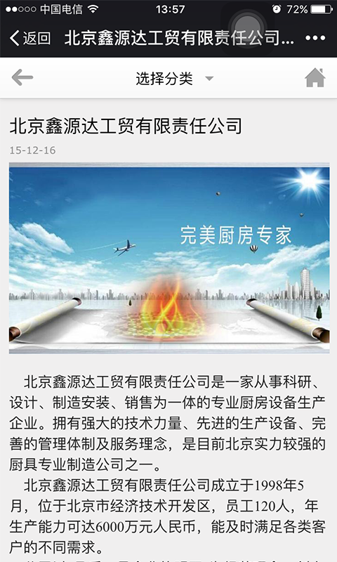 北京鑫源达工贸有限责任公司是一家从事科研、设计、制造安装、销售为一体的专业厨房设备生产企业。拥有强大的技术力量、先进的生产设备、完善的管理体制及服务理念,是目前北京实力较强的厨具专业制造公司之一。北京鑫源达工贸有限责任公司成立于1998年5月,位于北京市经济技术开发区,员工120人,年生产能力可达6000万元人民币,能及时满足各类客户的不同需求。