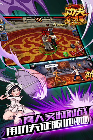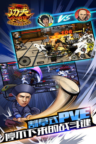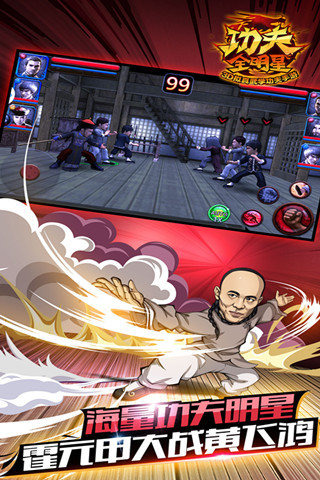《功夫全明星电脑版》详细考究历代武术拳法: 咏春拳、截拳道、醉拳、罗汉拳等等经典武学招式,展现各门各派武术精髓,博取众家之长!采取真实物理碰撞引擎打造,让玩家体验最真实的打击震撼,除此之外,研发团队更为《功夫全明星》重金打造拟真场景,依据日、夜不同的细腻景色,及高水平光影流转变化,将带给玩家耳目一新的游戏感受,除了能在游戏中扮演一代武学宗师外,另有多种竞技模式,可与其他玩家互相切磋武艺、一较高下,各派高手将在排行榜上激烈厮杀,一同挑战武学颠峰!不论是武坛巨星李小龙,还是潇洒儒雅的李连杰,或是硬派爽朗的甄子丹,只要你想的到,你就能看得到!还在一遍遍的幻想李小龙和甄子丹的巅峰对决吗?还在一次次的重温方世玉与洪熙官吗? 昱泉国际股份有限公司近日正式宣布,全新力作手游《功夫全明星》预计于第四季正式在大陆地区营运发行。相信即将问世的全新3D功夫武学动作手游《功夫全明星》必将引领3D动作手游市场。“功夫全明星”应有尽有!有功夫!无懦夫!