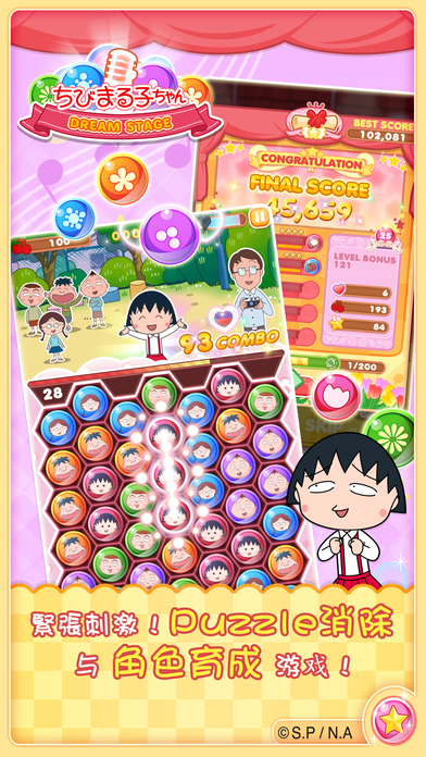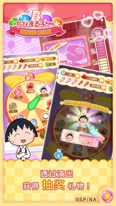 同时在本作中玩家还有机会解锁「花轮同学」、「小玉」、「小丸子爷爷」等动画中登场的诸多角色。此外,玩家还有机会获得游戏奖励、收藏品和帮助消除的强化道具。