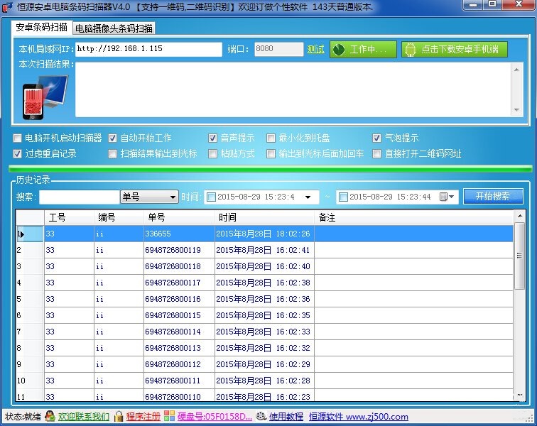 安卓手机也可以当作扫描枪啦!一维码,二维码统统搞定。 只要你的安卓手机能和电脑连接,就像扫描枪一样的效果,还支持当下流行的二维码识别,方便快捷。 本软件还支持摄像头进行一维码,二维码识别,没有安卓手机。摄像头也可以和扫描枪一样效果。 原理:只要在安卓手机上安装一个手机(没有安卓手机使用电脑摄像头也行),在您电脑上安装一个软件。就能将手机或摄像头扫描到的条码数据发给电脑。像扫描枪一样。方便快捷。