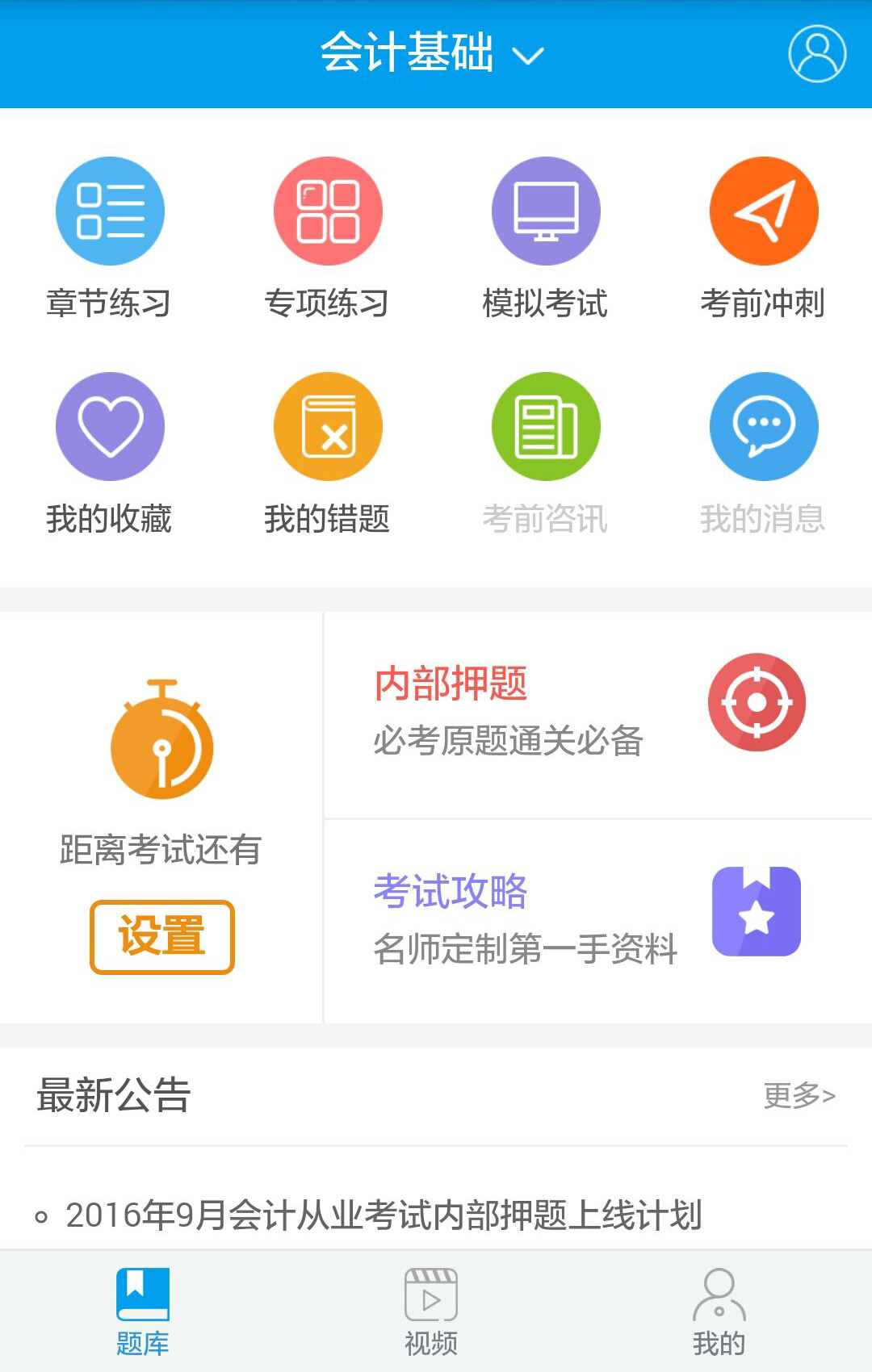 智题库包括《会计基础》、《财经法规与会计职业道德》、《初级会计电算化》三门课程,为2016年考试大纲全新题库。主要有章节练习、专项练习、模拟考试、考前冲刺、考前押题。同时包括相应的视频课程,可以做到随身学、随身看。