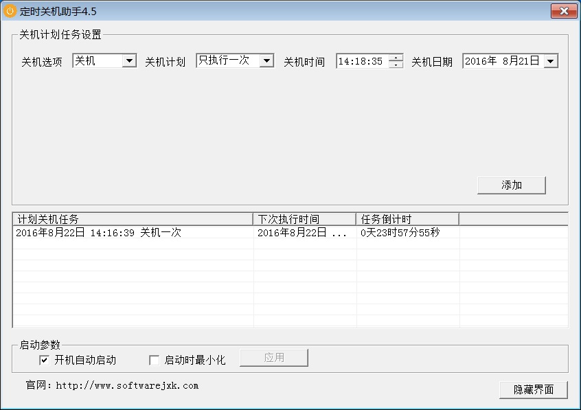 定时关机助手是一款便捷的小巧的定时关机软件。它没有那么多繁杂的功能和界面,有的只是简单和实用。只要经过简单的设置,就可以实现完美的定时关机功能,并后台隐藏。