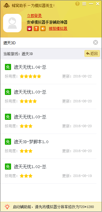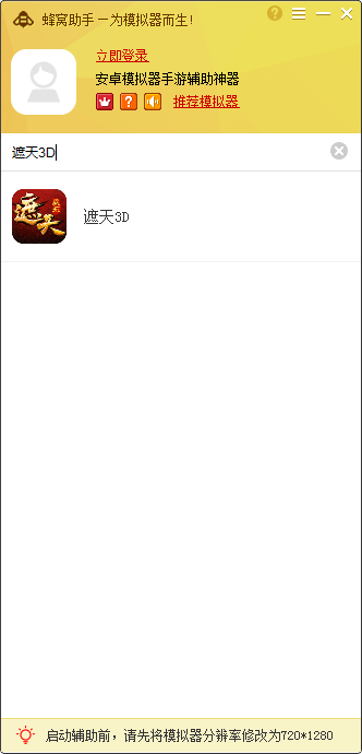 1.打开任意一款安卓模拟器,并将模拟器分辨设置为720*1280后,运行游戏。