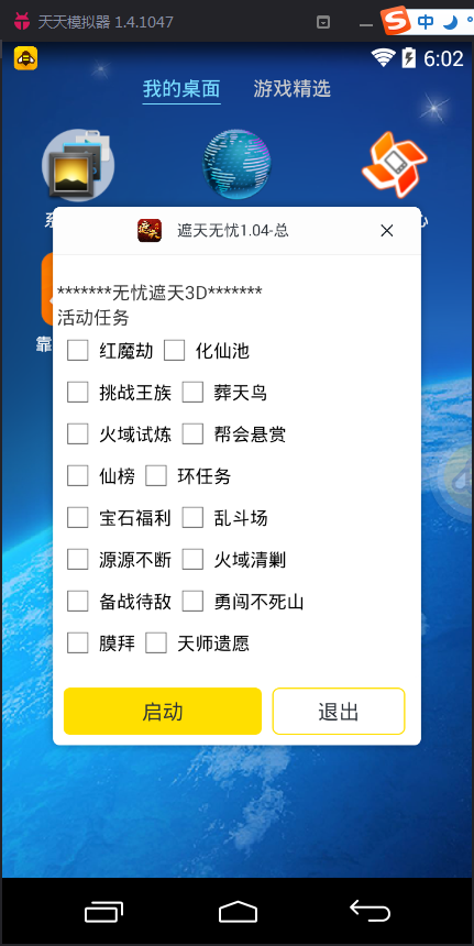遮天3D辅助包含了自动主线任务、支线任务、日常活动、挑战王族、葬天鸟、火域试炼、帮会悬赏、勇闯不死山等最实用脚本。
