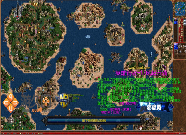 处于回忆,打算做款类似英雄无敌3的图玩玩。。。本图当前剧情是几个现代人机缘巧合穿越到英雄无敌的世界中。。。这里人类势力薄弱,将面临邪恶势力跟野外生物的联手袭击。。。三岁习武,六岁略有小成,12岁可越级挑战,18岁寂寞巅峰,24岁未尝一败。。。这是不可能的。。。算你再叼,也有对手,山外有山,天外有天,即使你是英雄,也会遇见难以想象的敌人。。。基本流程,2个+1的合成一个+2的,以此类推,开局基地右下刷虾子,+2左右就到基地左上刷豺狼,10级左右基地右边→_→杀熊,出破甲光环。。。之后出初级套装。。做专属。。。作者身上的装备仅供参考。。。输出有一半多来自装备附带的被动技能。。。BOSS数量根据玩家数量来的。