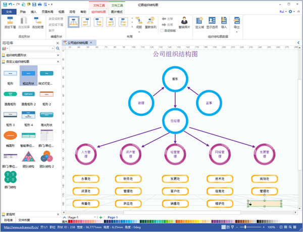亿图组织结构图是一款跨平台的组织结构图绘制软件,能让企业管理者快速绘制高质量的组织结构图,实现企业的流程运转、部门设置及职能规划。【软件特点】