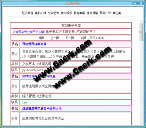 友益电子书库由友益在线文档资料管理软件制作开发,包括经济管理、电脑书籍、文学艺术、休闲娱乐、教育教学、社会哲学、百科知识等各类电子书,电子书库会不断自动进行更新。友益电子书库是您生活,学习的好帮手