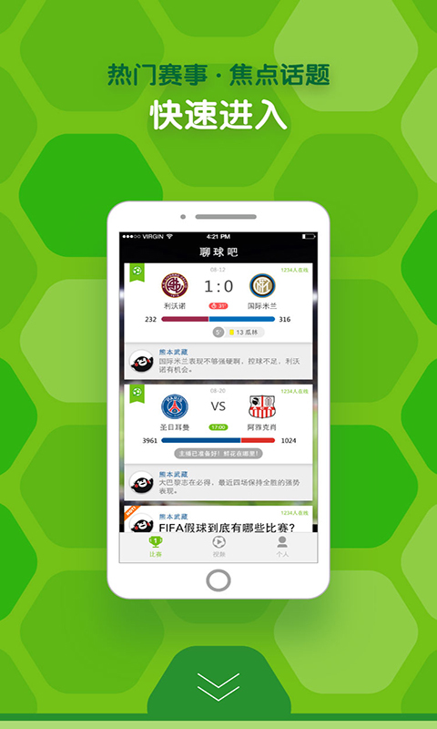 2.热门赛事,焦点话题,视频聊天室快速进入;