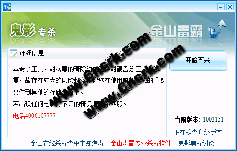 金山鬼影病毒专杀工具: