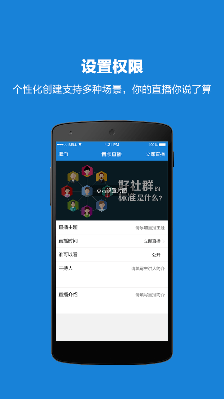可设置公开、密码、收费直播模式,满足社群分享的不同需求。