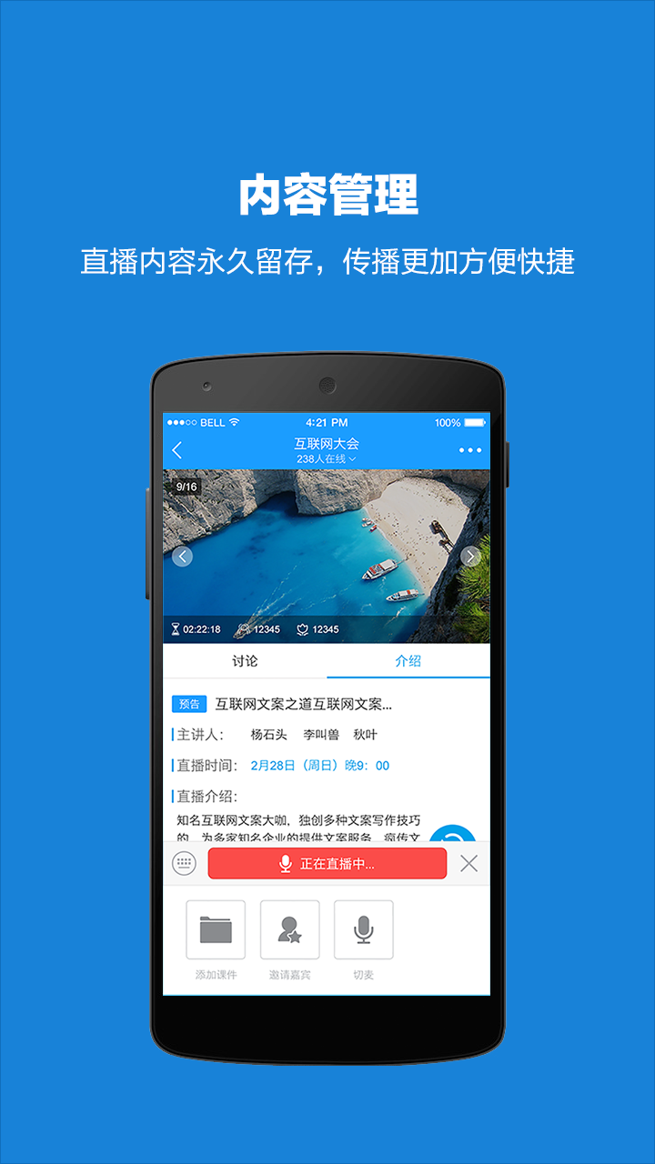 1.创建直播支持图文、音频、视频,直播形式丰富,操作简单。