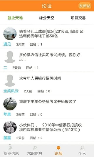 【论坛平台】分享就业资讯,招聘进程,交友结伴,拼车求租,求助帮扶。