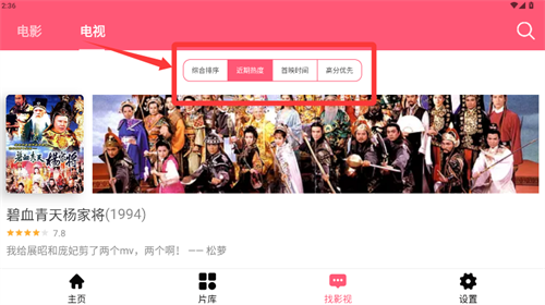 2. 来到电视分类页面,依据综合排序或者近期热度对节目内容进行筛选。