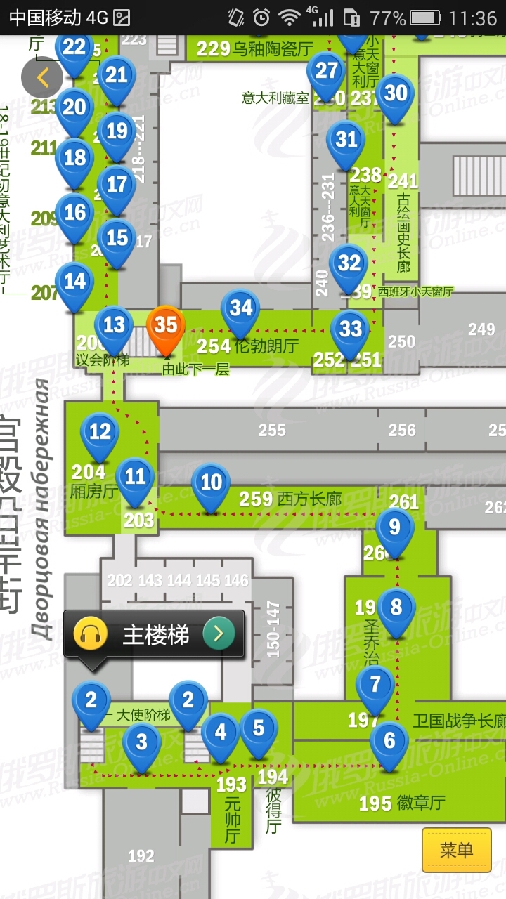 1、可缩放的冬宫层楼平面图,清晰明了所在位置;