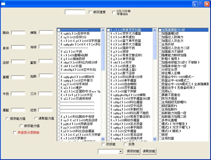 零零街头篮球辅助是一款功能非常强大的工具,用户使用该辅助可以实现改能力,改技能,无需技能槽,也无需点卷积分,勾选即可使用。街头篮球辅助包括的功能有空中接手,扑球,后仰3分,闪电抢断,快速补防,强力盖帽 百分百命中 全场抢断 全场盖帽 全场扣篮等等.
