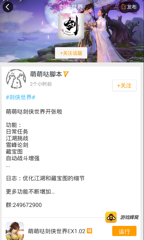 游戏蜂窝剑侠世界手游辅助脚本聚合了行业顶尖脚本作者,为你倾力打造最好用的剑侠世界手游脚本。