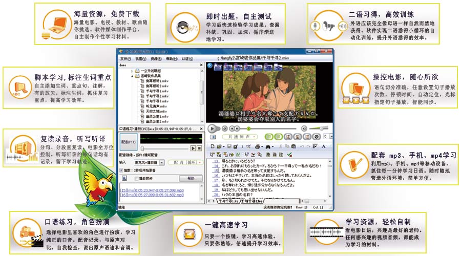6.随身学:将声音文件放入你的mp3机中随时随地的学习。