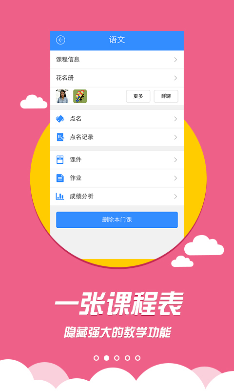授课者可以创建圈子加人,在圈子里上传自己的教学视频与课件;分析学生的成绩;还可以点名哦!
