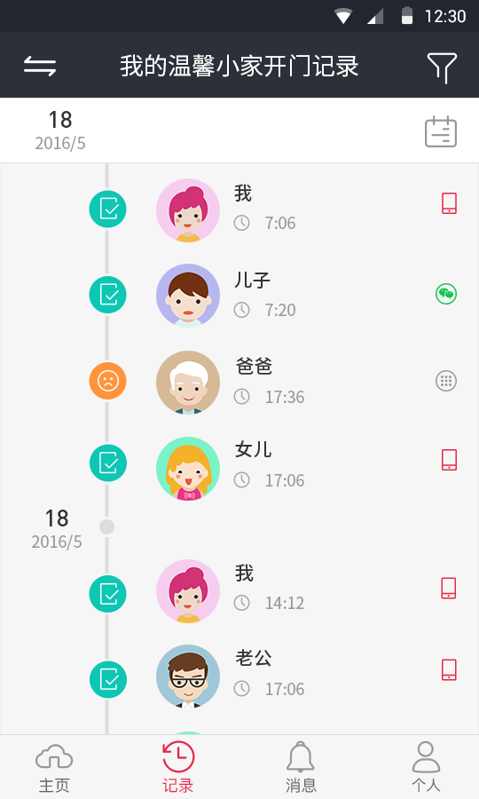 【开门记录】有了开门记录,管理员随时随地都能查看家中的成员的动态,家中的儿童和老人也能得到更多的关注。