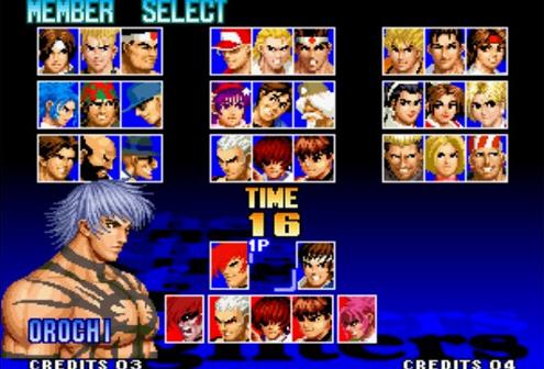 大蛇 (KOF中的强者。SS版的大蛇选法:在练习模式中先选出上述5名隐藏角色,把光标移到普通克里斯处同时按下L、R、Y、Z、B五键一秒即可……有些街机经过修改也能直接选“大蛇”等人!)