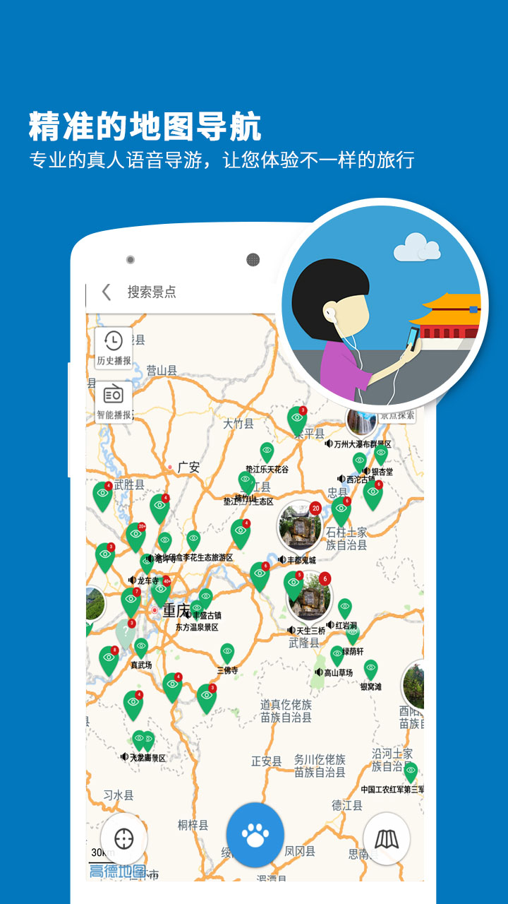 导游-步行和行车导游双模式随您选择,通过GPS定位为您精准播报每个景点的历史文化和内涵攻略-详细的景点门票、交通、住宿、商店等实用信息