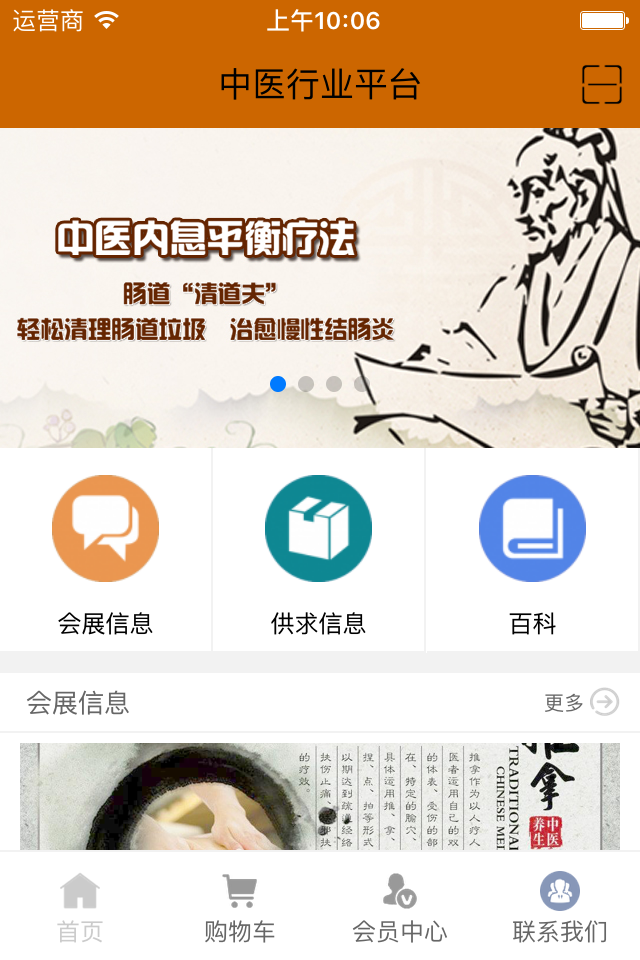 中医行业平台是一款资讯阅读服务软件,该软件集行业资讯、供求商机、企业黄页、中医养生等多种功能为一体,你能在这里找到你需要的内容,同时也能为你的生活带来更多的健康。