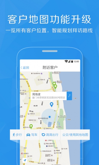 客户地址导航、附近客户查询、通话名片信息弹窗、生日客户提醒、推荐联系,应用在手随时随地记录、查询,帮助轻松服务客户,提高客户满意度;