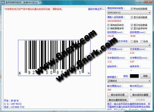 一个支持数十种常用条形码且完全免费的条形码制作软件,支持Win98/2K/XP/Vista/Windows 7等系列操作系统。该软件制作的条形码,可直接粘贴到CorelDraw、Illustrator、Word、wps、Excel、PowerPoint等应用软件中。与其他软件不同的是,该软件制作的条码,完全基于矢量图形技术:当你把该软件制作的条形码粘贴进CorelDraw等矢量图形编辑软件时,你可以拆解条码的每一个Bar!