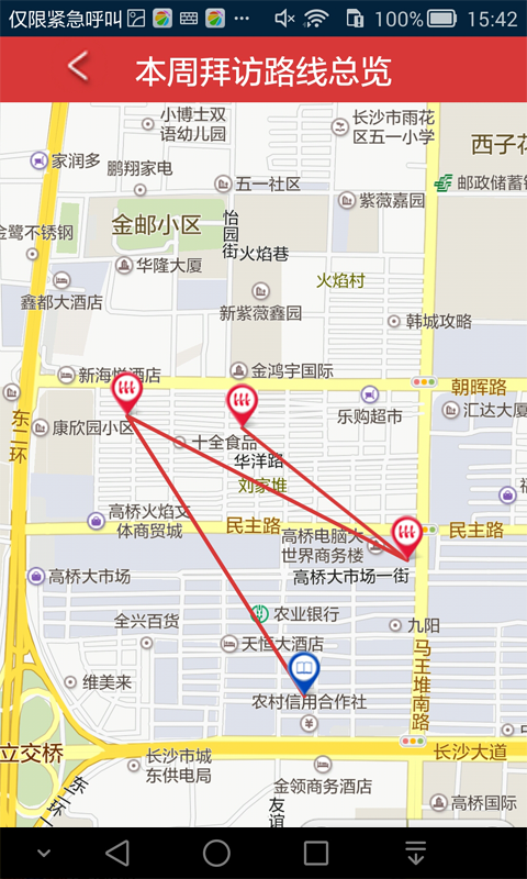 10.外勤管理:让您可以对在外的业务员进行统一的管理,通过百度地图知道他们的动态。同时可以查看所有业务员上班情况,以及每日和每周的业务情况。