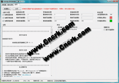 岩岩魂丝路英雄辅助工具 V1.1.3.0 简体中文绿色免费版 本软件可查询QQ游戏丝路英雄中本城及分城的各项数据,可以在资源爆仓和被入侵时发出警报。本软件自带浏览器,使用独立的Cookie,所以能实现多用户登陆。如果您发现有什么错误,不妨联系我。[推荐提交到论坛] ^-^一切破坏游戏平衡的功能,本软件全部封闭。