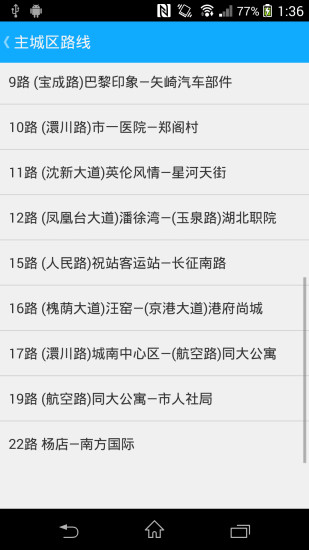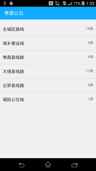 查询:提供孝感地区公交线路查询,公交换乘,实时公交等信息。线路:提供所有公交线路信息,包括所有站点信息以及所在线路上的实时公交位置数据。