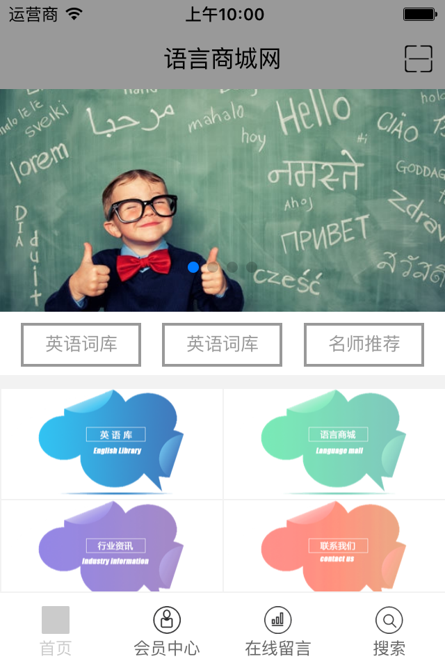 语言商城网是一款便捷的在线学习教育应用。该应用里有海量的英语学习教育内容,更有许多的英语学习书籍和资料,快速下单,便捷发货,快速送货上门 。