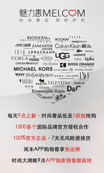 魅力惠,作为亚洲时尚奢品限时折扣网站的领导者,于2010年进入中国市场。秉承100%官方正品、超值折扣的时尚智选理念,至今已与1500多个国际着名时尚及奢侈品牌官方授权合作。魅力惠时尚顾问根据最新的潮流趋势和客户需求,精挑细选各大时尚名品,每日9点推出低至1折的优质精品,致力为顾客提供一流的奢侈购物体验。