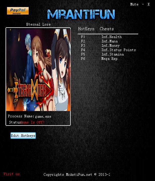 永恒传说六项修改器下载 v1.02 MrAntiFun版 永恒传说六项修改器是一款专为《永恒传说》游戏玩家们所提供的游戏修改工具。该工具不仅小巧绿色,还可为玩家免费提供六项强大的游戏修改功能,有需要的玩家自行下载。