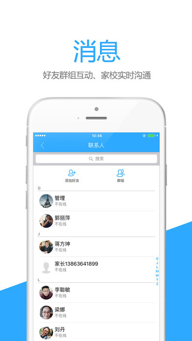 6、家长和老师便捷高效的即时沟通,支持单聊和群聊。