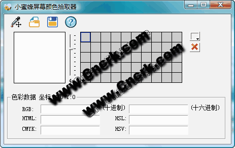 小蜜蜂屏幕颜色拾取器 V1.0 简体中文绿色免费版 精巧的小蜜蜂屏幕颜色拾取器,小蜜蜂屏幕颜色拾取器可以方便的拾取屏幕上任何位置的颜色保存到调色板中,拾取窗口可以进行1-10倍缩放,可以对调色板中的颜色进行保存、再次读取。色彩数据提供:RGB、HTML、CMYK、HSL、HSV多种格式。本软件为绿色免费软件