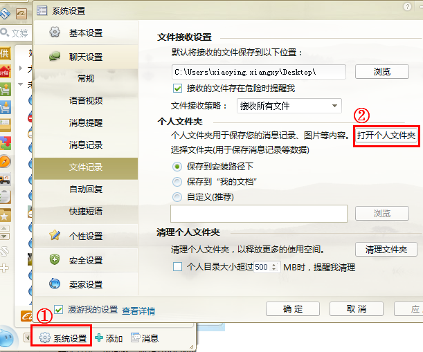 2、点击系统设置—聊天设置—消息记录—消息在线存储,勾选“将我的消息记录保存在TradeManager服务器上”
