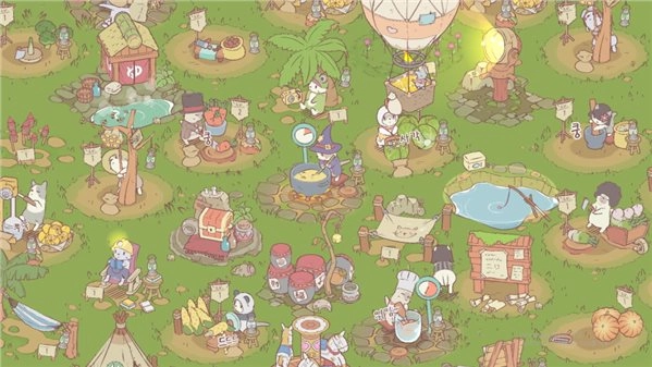 核心玩法为持续售卖汤品、增添建筑、招募新的猫咪,进而扩大营地规模。
