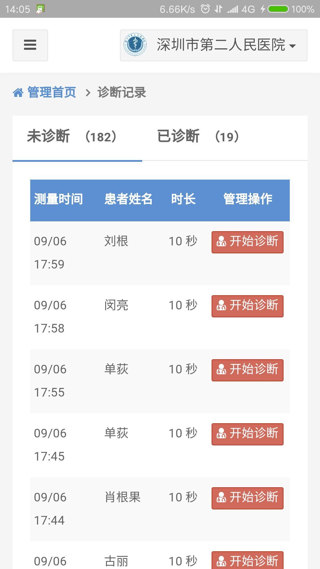1、嵌入中心医院web连接,确保中心医院端web功能的正常使用,包括标尺功能;2、当中心医院端登录后,APP会登录信息传给web,web根据登录信息自动登录,当该账号有新的未诊断诊单时,服务器会向APP发送推送消息,消息内容为:您好,您有新的未诊断诊单,请及时诊断,APP收到推送消息后,会在通知栏显示该消息内容。当用户在通知栏点击推送消息时,APP会自动跳转至诊单列表页面;
