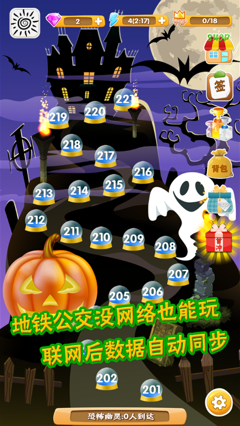【随时随地想玩就玩】地铁公交,不用流量也能玩,没有网络情况下,数据保存在手机,连接网络登陆后,数据同步到服务器,离线玩数据也不丢失!