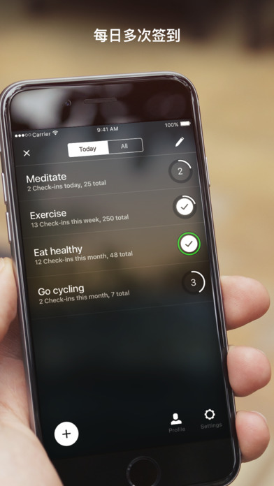 里程碑和待办事项:在很多情况下,将一个习惯细分成很多更小、更易管理的步骤更容易让人坚持下去。另一种方式是跟踪重要的里程碑来获得动力。想两个方式都用?没问题,您可以为每个习惯添加里程碑卡片,想添加多少都行。
